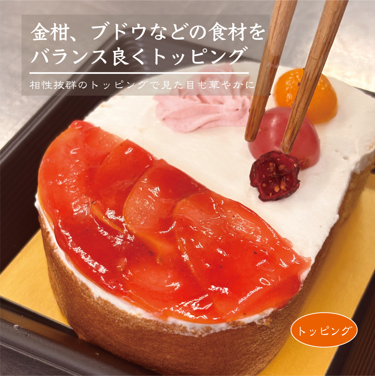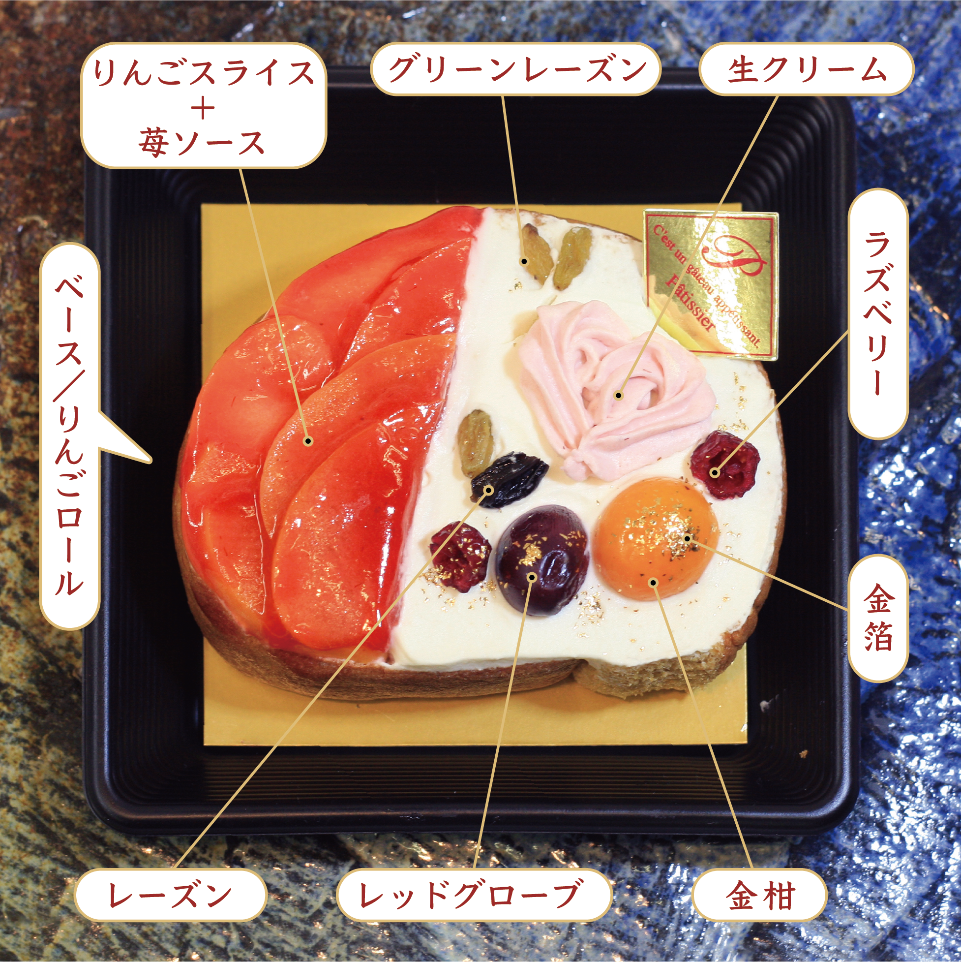 ハート型の純生クリーム、金柑、ぶどう、クランベリー、2種類のレーズンなど